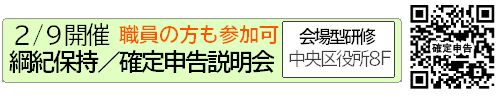 【会員・職員研修会】※職員の方もご参加可能です。開催日:令和8年 2月9日(月)会場型 オンライン 「確定申告説明会」会場:中央区役所8階会議室オンライン:ZOOMウェビナー ご案内中です。 |
